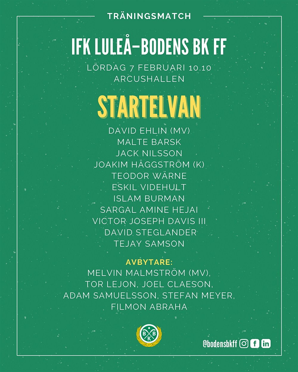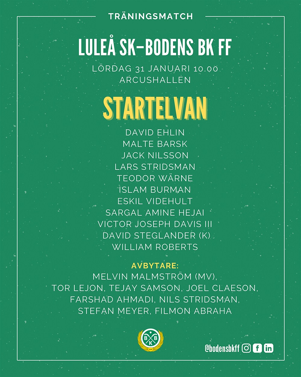 En debutant och en försvarsspelare ser till att BBK vinner sin första träningsmatch för året mot Luleå SK med 2-1(1-0). Målskyttarna var Jack Nilsson, ordinarie i backlinjen, och Filmon Abraha, uppflyttad från BBK:s...