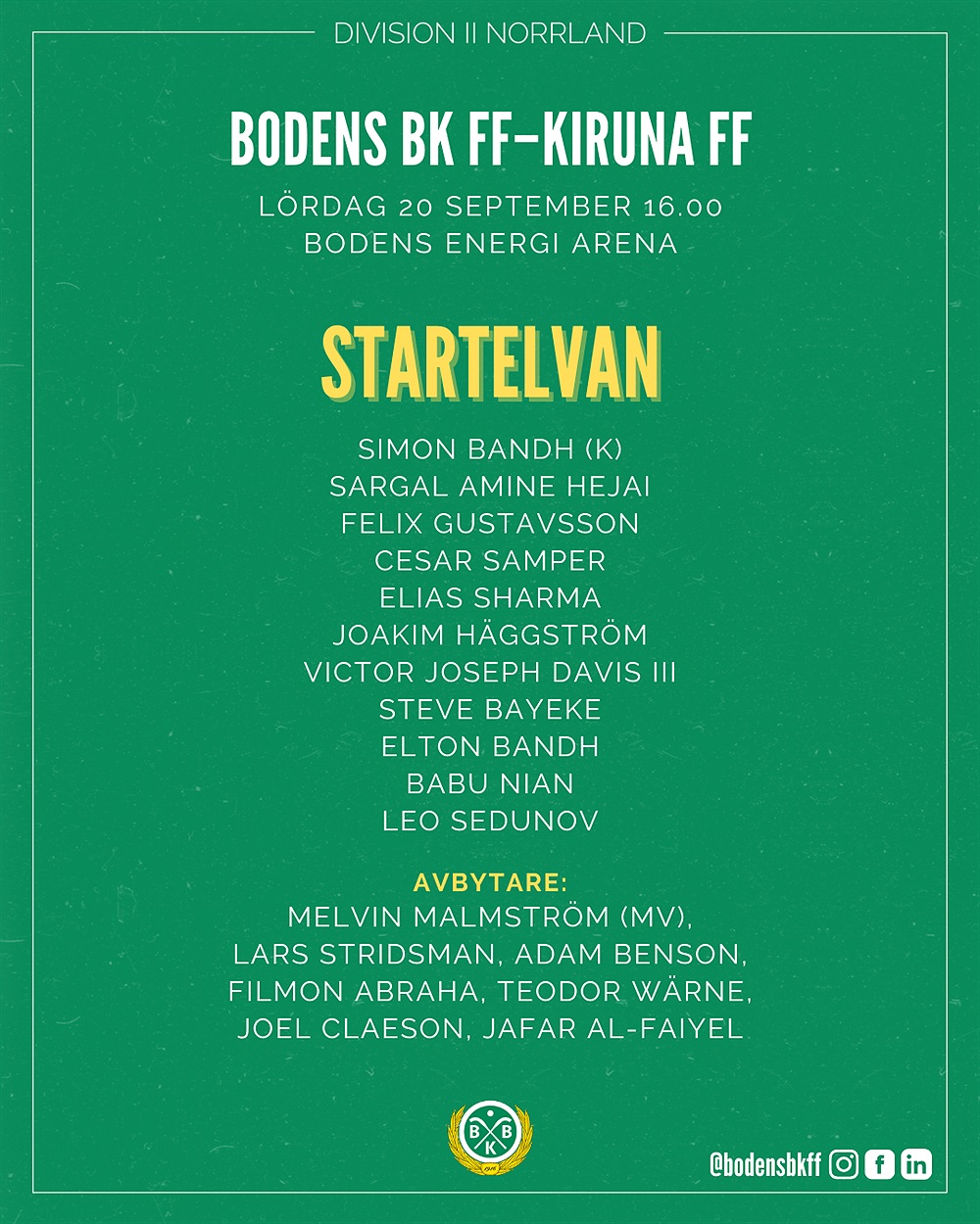 Dagens startelva i hemmamatchen mot Kiruna FF.