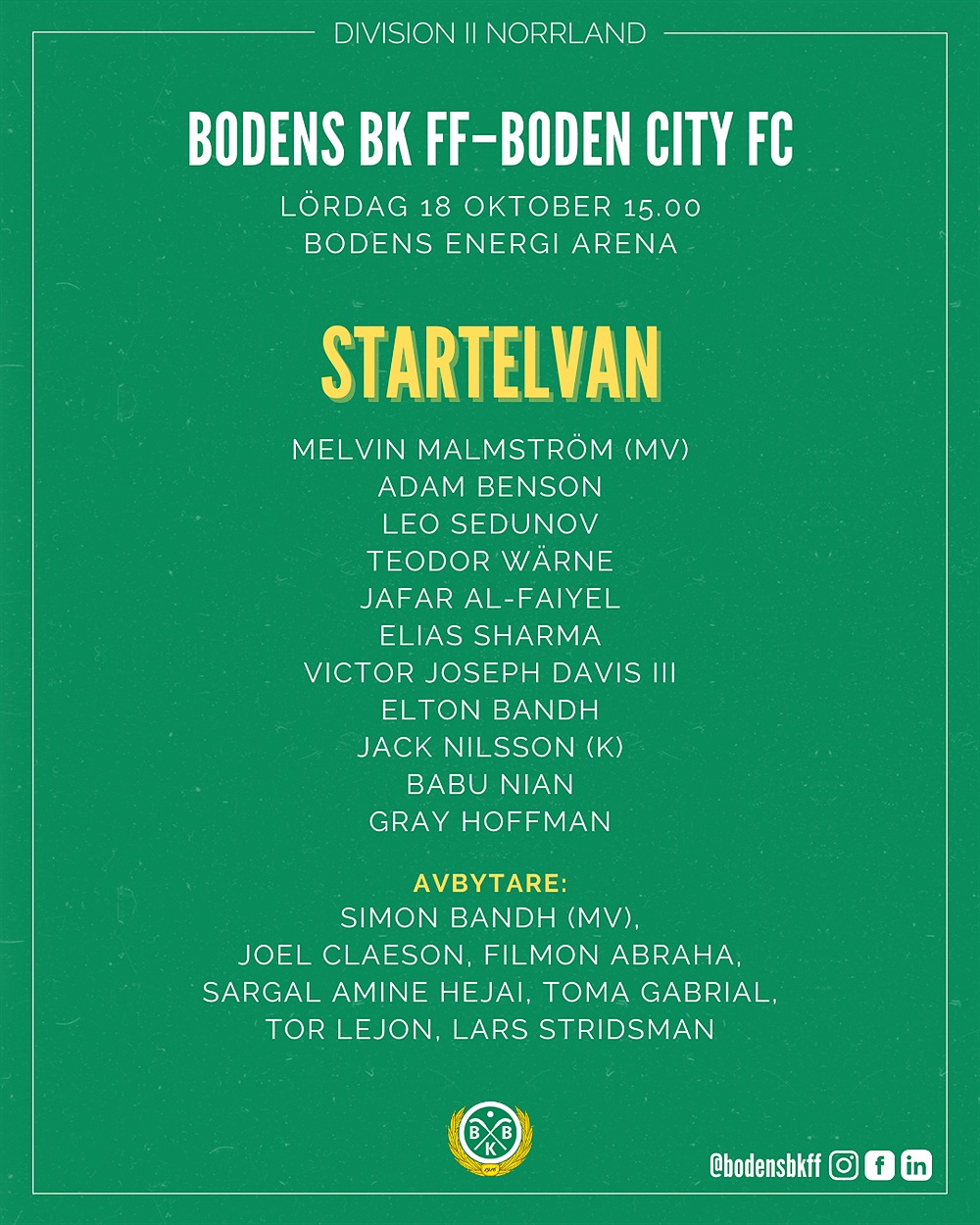 Dagens startelva i hemmamatchen mot Boden City FC.