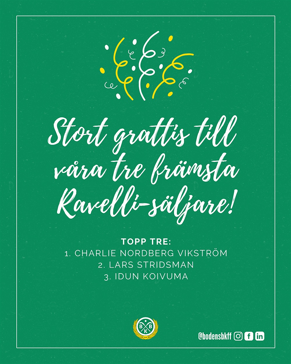 Ravelli-försäljningen är nu avslutad och vi vill gratulera våra främsta säljare.